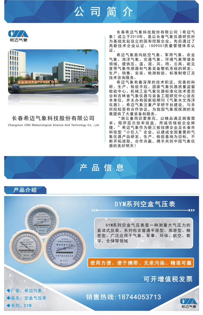 DYM系列空盒氣壓表
